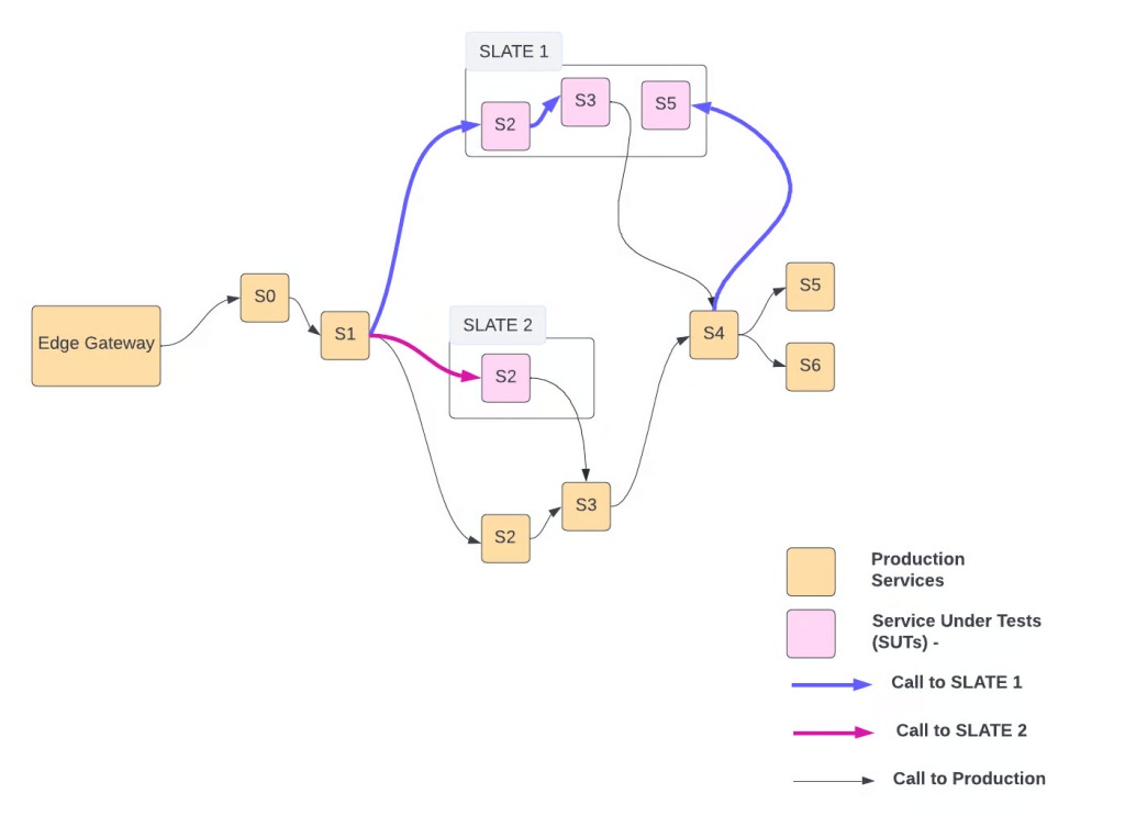 “SLATE significantly improved the experience and velocity of E2E testing [end-to-end] for developers. It allowed them to test their changes spread across multiple services and against production dependencies. Multiple clients like mobile, test suites and scripts can be used for testing services deployed in SLATE. A SLATE environment can be created on demand and can be reclaimed when not in reuse, resulting in efficient uses of infrastructure. While providing all this, it enforces data isolation and compliance requirements.”