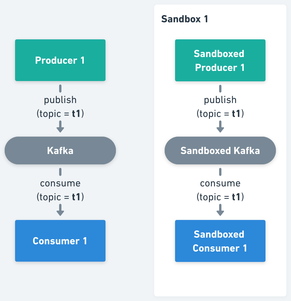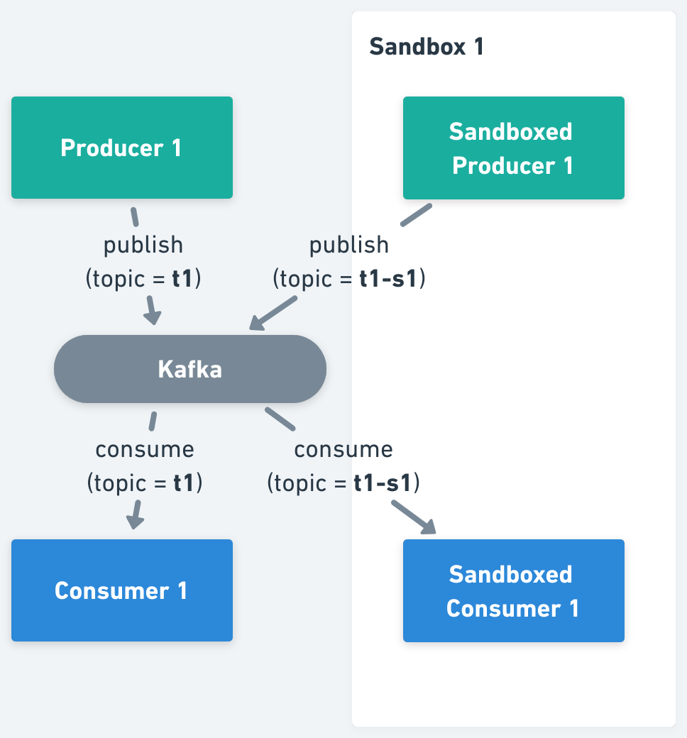 2. Isolate Kafka Topics, where all producers and consumers should be forked, pointing them to the per Sandbox topic.