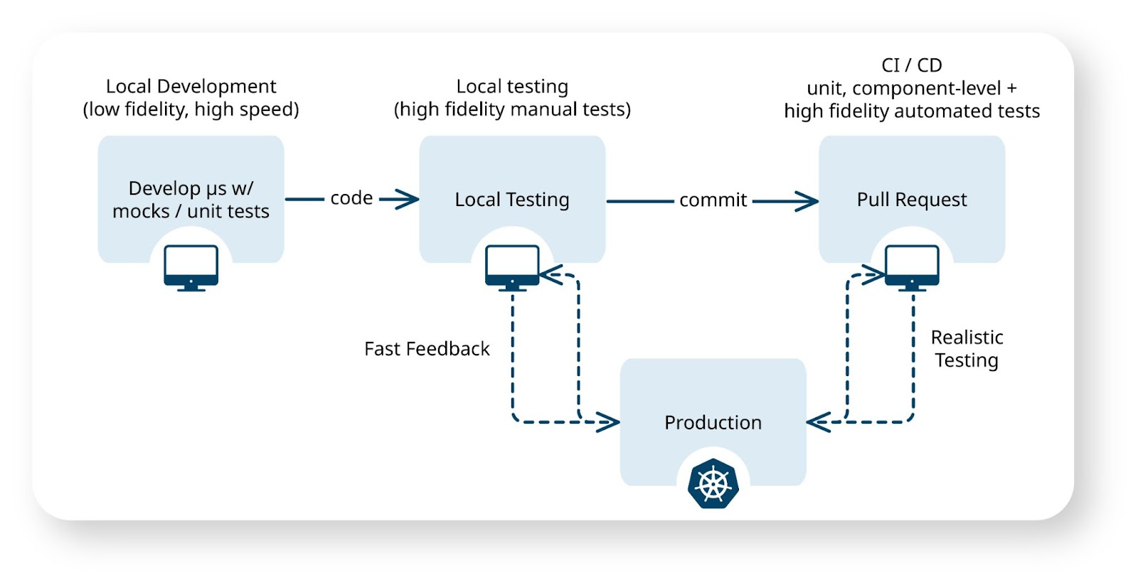 Developers benefit from a rapid iteration process on their local workstations. With Signadot, each change is quickly tested end-to-end against the production environment within a few minutes. This also incentivizes developers and agents to engage in more ad-hoc testing, allowing them to validate their code changes effectively.
