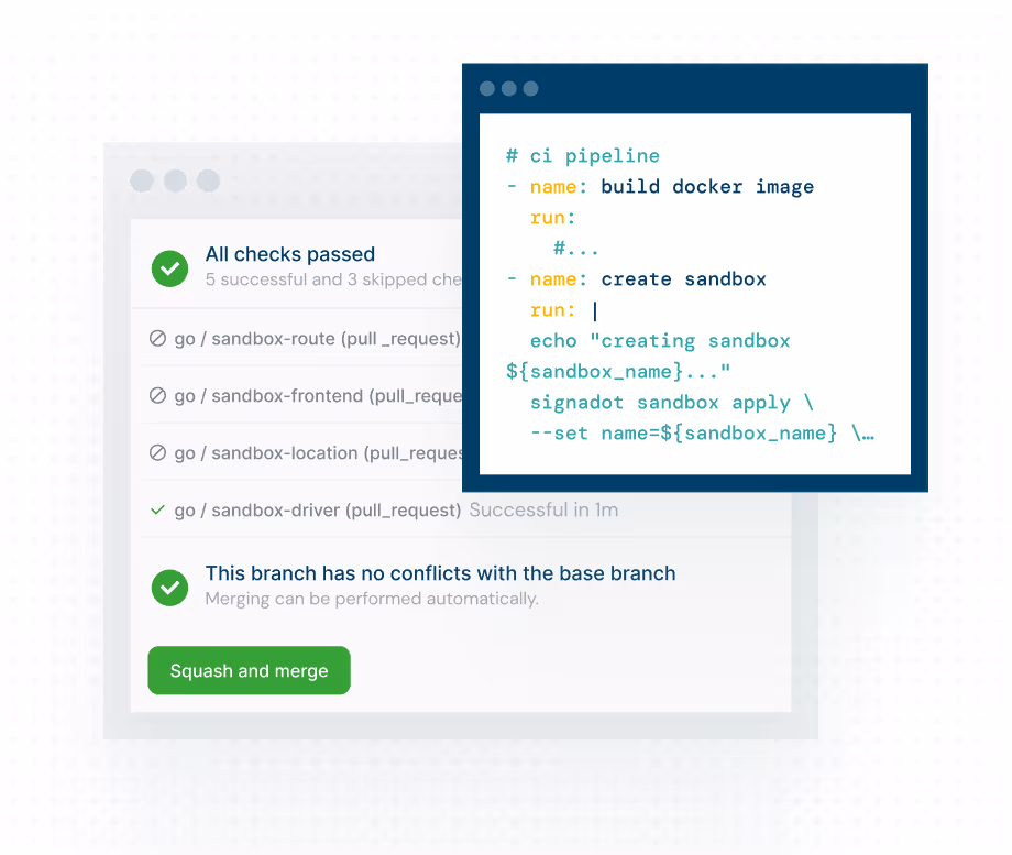 1) The Signadot CLI integrated into your pipeline to create sandboxes for each PR