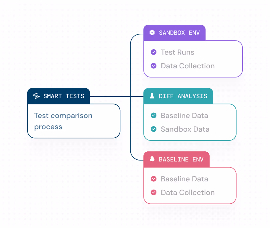 Since SmartTests runs against your existing staging/pre-production environment, you avoid the typically time-consuming process of setting up separate test environments or managing test data.