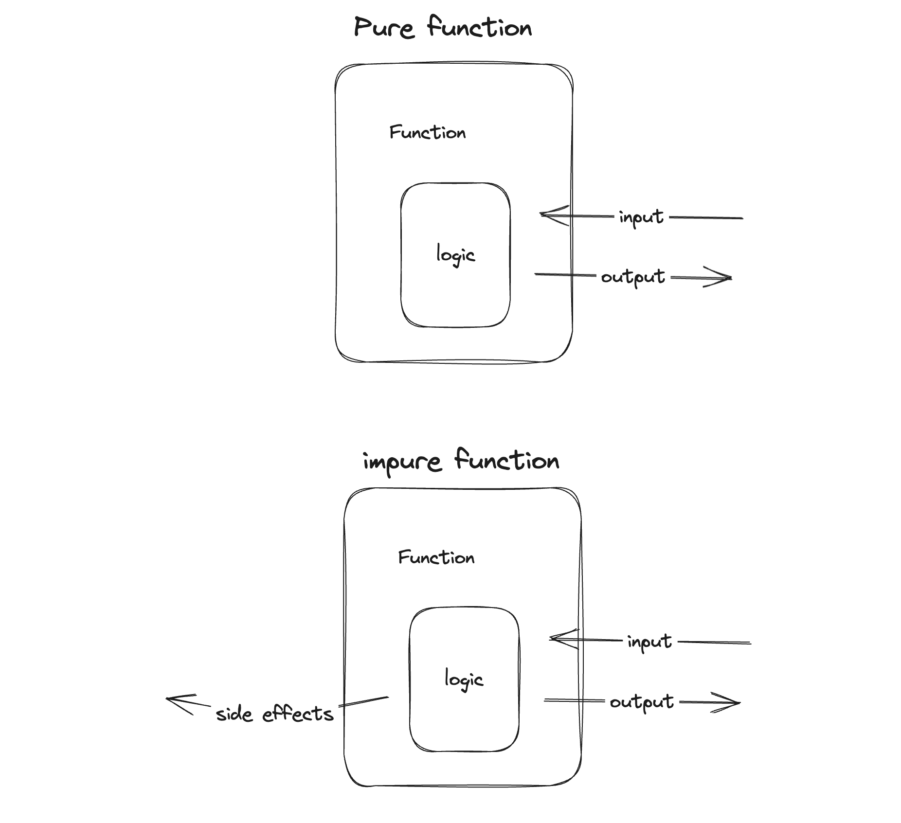 ure functions only consult their internal logic, and just have inputs and outputs. Impure functions either emit side effects or bring in outside state, these side effects are, generally, where mocks come in. And the thing is Pure functions can easily be tested with unit tests, and impure functions require so much support to run unit tests, it’s not worth doing.